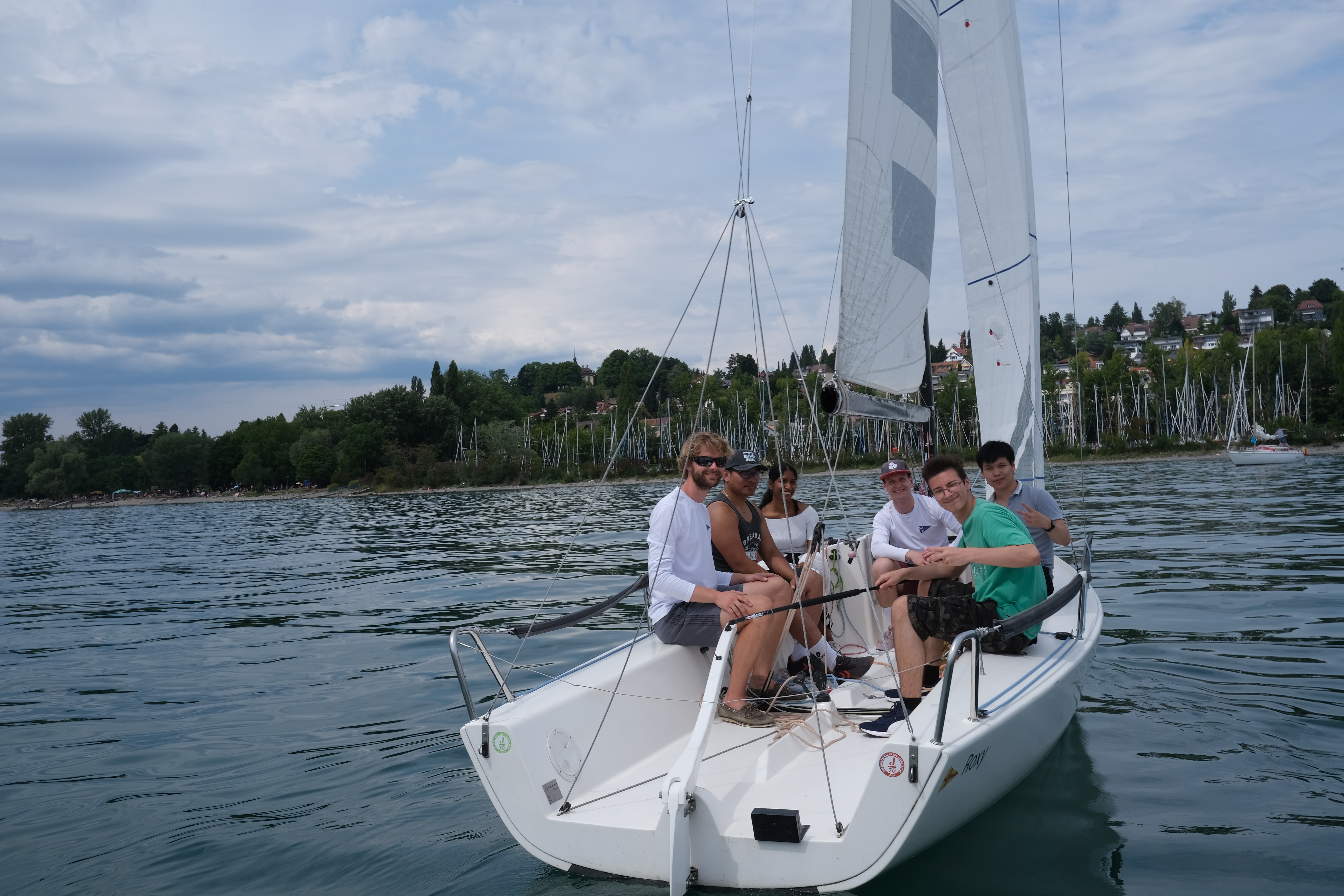 „Bei zunächst leichtem Wind segelten wir uns auf zwei J/70 warm. Plötzlich zog eine kräftige Front über den See auf, die uns zu einer spannenden und ziemlich spektakulären Rückkehr in den Hafen zwang“, kommentierte Alex Gaiser den Samstag Nachmittag. Zum Glück kamen die SMCÜ Boote rechtzeitig und sicher wieder im Hafen an.
