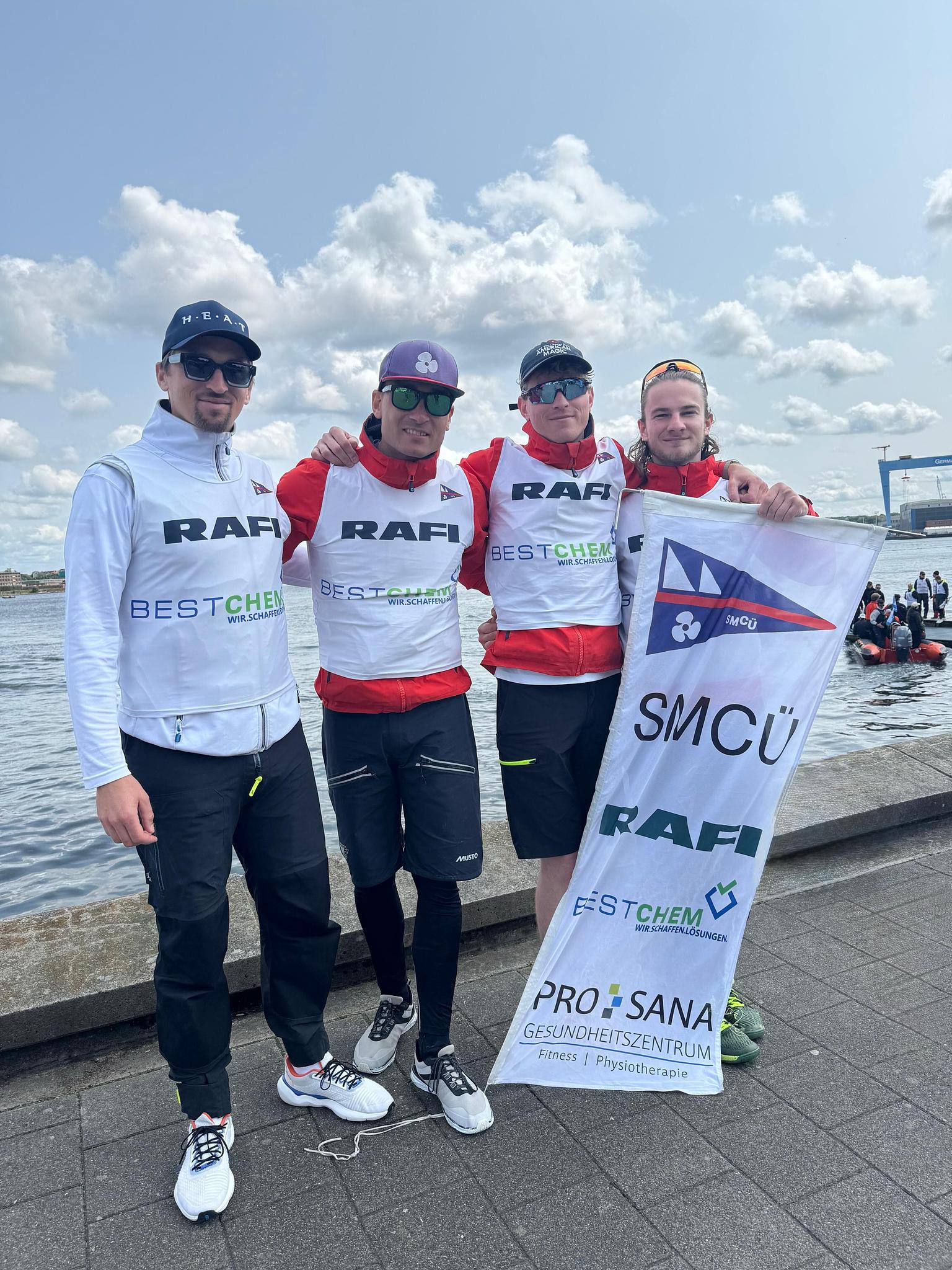 Bereits am Freitag wollte die Crew in Kiel trainieren, da die Boote zunächst in Schilksee lagen, musste eines davon noch zum Segelcamp an der Innenförde überführt werden. Wegen zu starkem Wind war ein früherer Trainingsstart zunächst nicht möglich – am Abend hat es dann aber für eine kurze Einheit bei 10 bis 25 Knoten gereicht. Ein wichtiges Training, was aber, wie sich dann herausstellen wird, nicht ausgereicht hat.